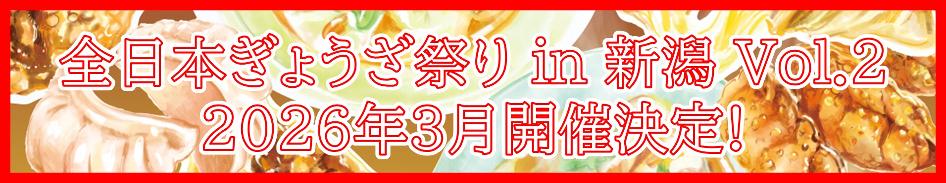 NEWS 2025.12.19 お得な前売入場券は、2026年2月7日(土)より発売開始です。 2025.10.31 2025年10月21日(土)~10月23日(月休)「全日本ぎょうざ祭り2026秋 in モリコロパーク」開催予定